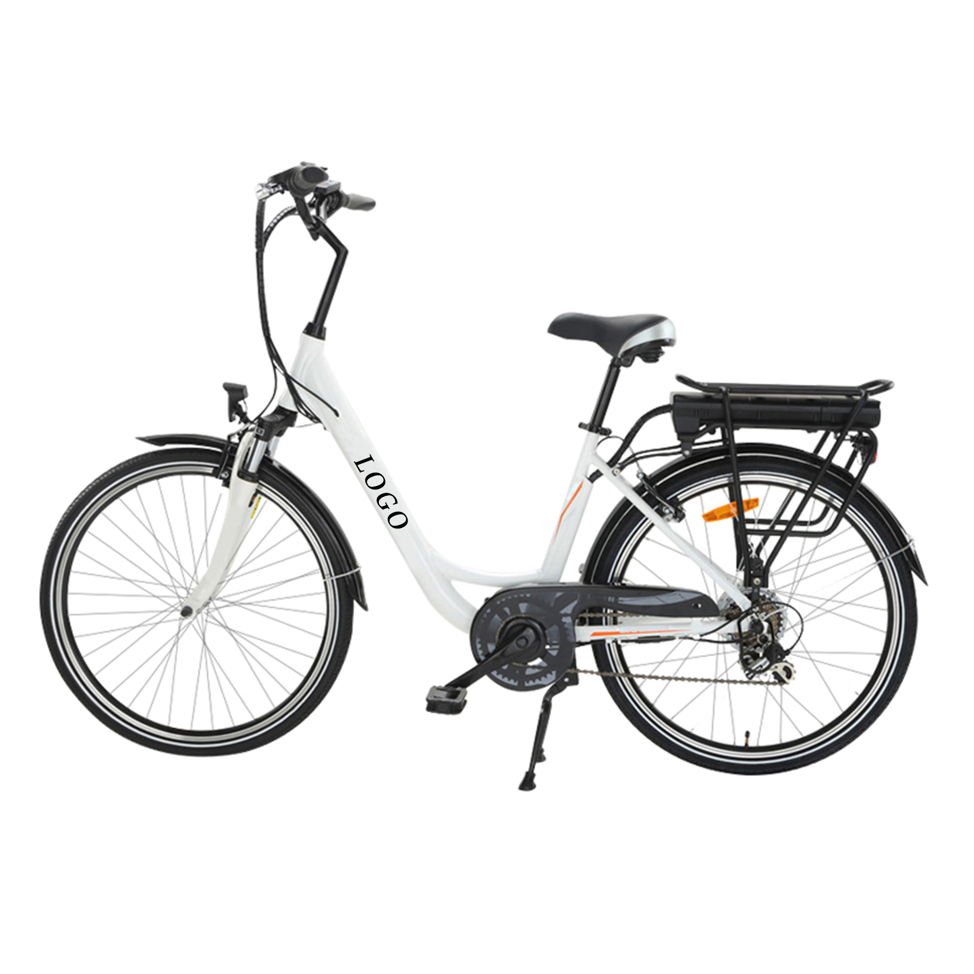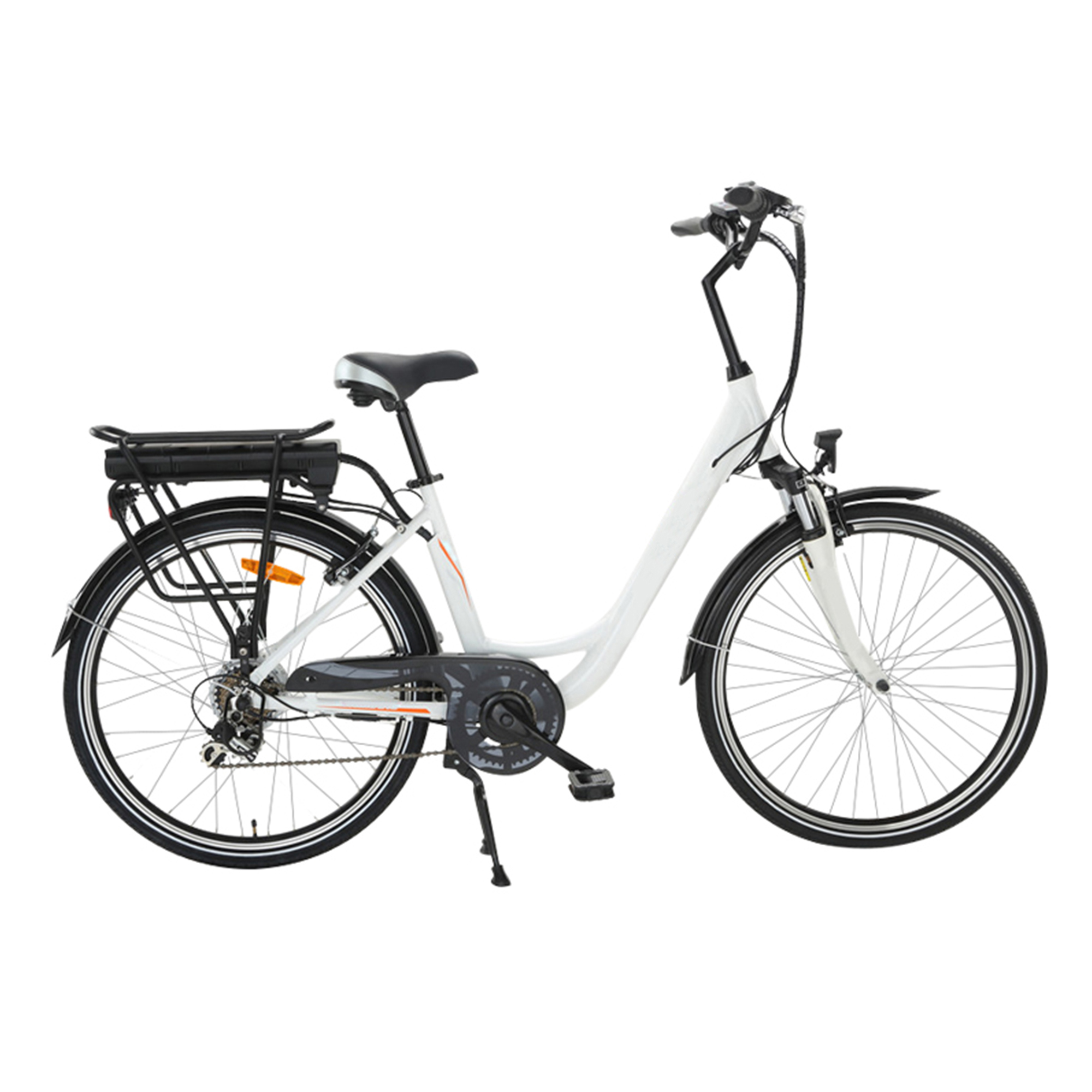 26"Aluminium Alloy 36V 250W Rear Motor SHIMANO 6 Speed B16 White city bicycle ebike
